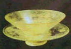 飲茶用的素面淡黃色琉璃茶盞、茶托