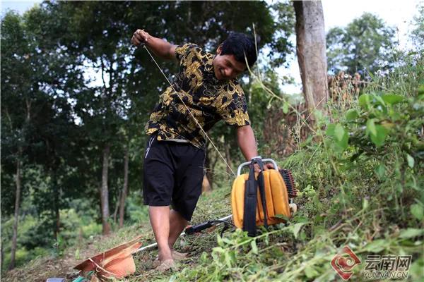 此時(shí),娜四正在茶地里查看茶樹(shù)的生長(zhǎng)情況,時(shí)不時(shí)用鋤頭翻翻地、培培土;扎藥則拿著電動(dòng)割草機(jī)清理隔壁山坡上的雜草。割草機(jī)的聲音很嘈雜,掩蓋了屋前潺潺的流水聲,停頓的間隙與山林間的蟬鳴相互唱和,卻全然沒(méi)有打擾到娜四小兒子在她身后的背簍里熟睡。“這個(gè)季節(jié)種茶容易活,我已經(jīng)泡好了茶籽,等那片地清理出來(lái),我們準(zhǔn)備開(kāi)溝種上茶,還有之前種了茶籽沒(méi)有活的地方,也要補(bǔ)種一下。”娜四介紹,因?yàn)榍謇砉ぷ鞅容^復(fù)雜,夫妻倆打算在小木屋住一晚,天亮了早早開(kāi)工。