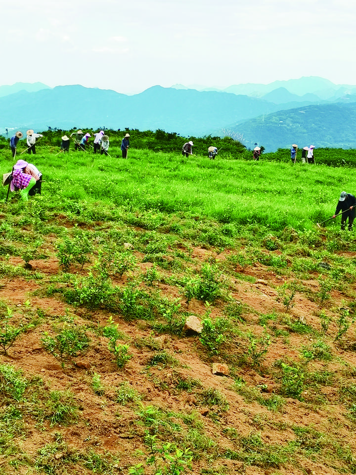 村民們?cè)谛虏鑸@除草。