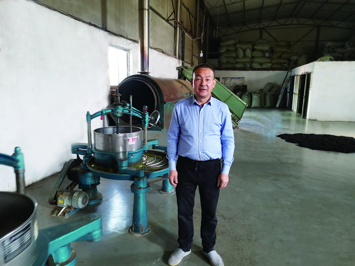 王永鏡在制茶車間。