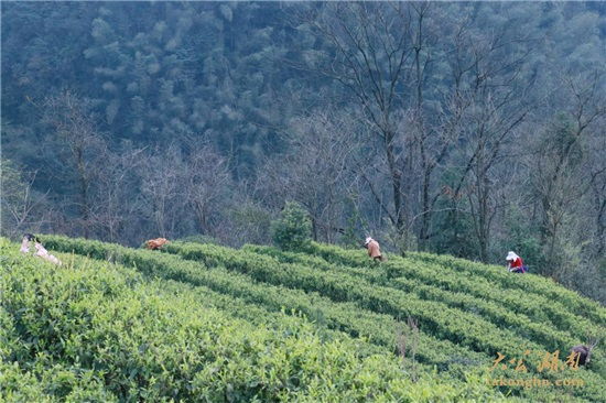 “這一片基地已經(jīng)是今年第二次采摘了,今年天氣好,早茶生長很快,品質(zhì)也很高。”春日暖陽照耀下,湖南省常德市桃源縣楊溪橋鎮(zhèn)蔡家塘村的里寶山有機(jī)茶園基地,迎來了早茶采摘的黃金時間。采茶工們正在動作熟練的采摘茶葉,桃源縣君和野茶開發(fā)有限公司董事長詹立君興致勃勃地向記者介紹著里寶山有機(jī)茶園基地情況和今年茶葉的長勢。