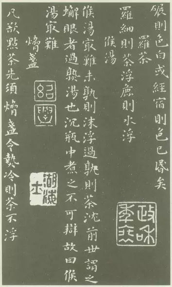 《煎茶水記》這是一本現(xiàn)存最早的專門論水評泉的著作,在陸羽《茶經(jīng)》的五之煮上進行延展發(fā)揮,將適于烹茶的水進行更為全面地剖析,整部書僅約900字,列出當時唐代宜茶用水20處之多。