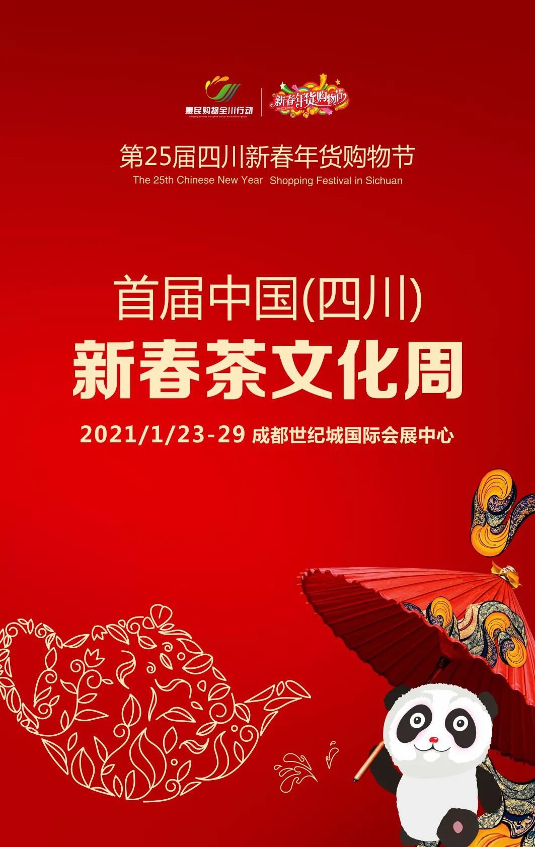 首屆中國(四川)新春茶文化周,將于2021年1月23日-29日精彩亮相成都世紀(jì)城國際會展中心!歡迎國內(nèi)外茶企、區(qū)域茶品牌共襄盛會!共謀新春商機(jī)!