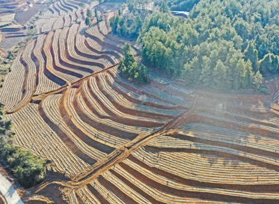 圖為日前,當?shù)亟?jīng)過整治并種上茶樹幼苗的石漠化土地。