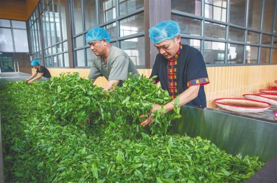 五指山市地處海南島中部生態(tài)核心區(qū),濕度高、海拔高,常年云霧繚繞,好環(huán)境造就了五指山茶的好品質(zhì)。近年來,當?shù)厣钊脎`行“綠水青山就是金山銀山”理念,努力在“產(chǎn)業(yè)生態(tài)化、生態(tài)產(chǎn)業(yè)化”的實踐中打造茶產(chǎn)業(yè),走出一條具有地方特色的高質(zhì)量發(fā)展之路。2021年,五指山全市茶青產(chǎn)量約221噸,茶干產(chǎn)量約44噸,產(chǎn)值約7072萬元。