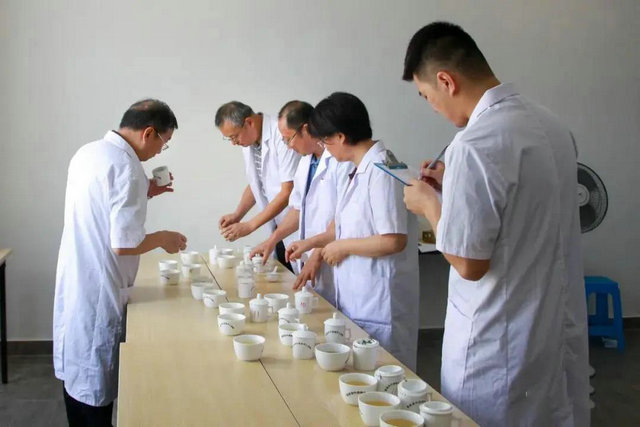 評外形、鑒湯色、聞香氣、品滋味、看葉底……斗茶賽現場,8位審評專家揉捏嗅聞,細看細品,專注評審參賽茶樣,根據茶樣的外形、香氣、湯色、滋味和葉底五個方面進行評分,將五個分數相加,從高到低設置獎項,并對獲獎茶樣進行質量安全檢測,評選出各個茶類的茶王一名,金獎兩名,銀獎三名。