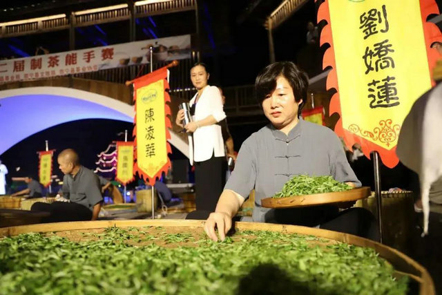 炒青、揉捻,翻炒、抖散……鮮嫩的茶葉魔術般地變緊變細,7月20日,在浦源鎮(zhèn)鯉魚溪荷花池畔由周寧縣總工會、茶業(yè)局、文旅局、茶業(yè)協會聯合舉辦的“周寧縣第二屆制茶能手賽”精彩上演,現場茶香四溢,引來群眾、游客紛紛駐足觀看。